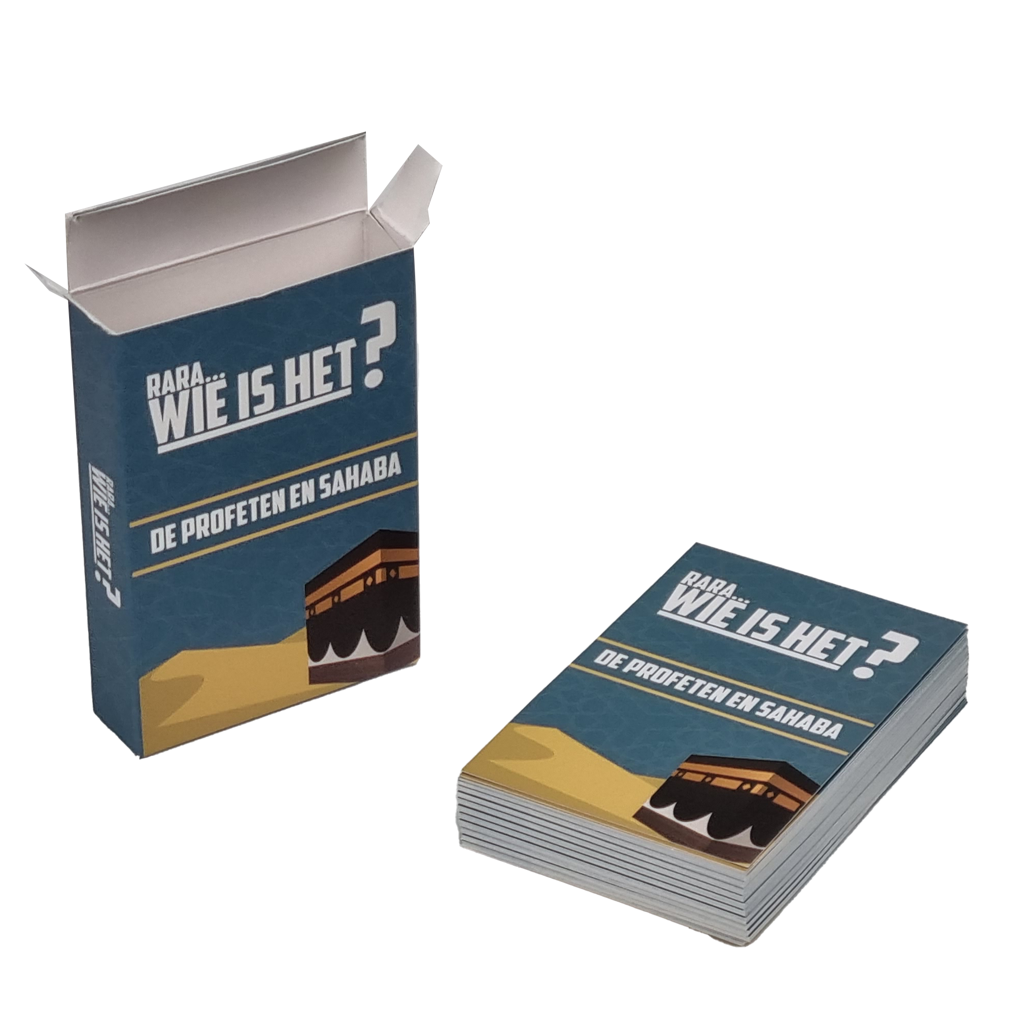 - Bestaande uit 53 kaarten waarvan 25 profeten, 25 sahaba, 2 “kaaba” kaarten en 1 spelregel kaart.